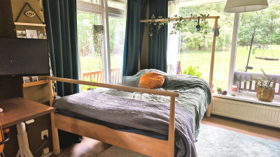 Tijdelijk te huur tot 1-1-27 voor een student welke nog niet ingeschreven in Zeist is: mooie 1-persoonsstudio (1 vertrek met c.v., eigen wastafel en eigen keuken, douche en toilet) in volledig gerenoveerd villa gelegen in de Zeisterse bossen, nabij de A28. Inclusief laminaatvloer, parkeerplaats en het medegebruik van was/droogmachines. Bijzonder vanwege de schitterende ligging ten opzichte van de tuin.